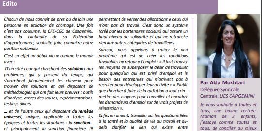 La CFE-CGC de CAPGEMINI est l’organisation syndicale de salariés de l’encadrement et cadres. Elle est la SEULE à avoir signé avec “réserves”, le 27 juillet 2018, l’Accord Egalité Professionnelle de l’UES de CAPGEMINI. Prochaine réunion : 23 octobre 2018 ! Nous avons souhaité par cette signature sous “réserves”, souligner trois de nos axes majeurs. continuer…