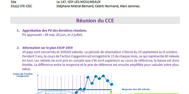 Flash Compte rendu du Comité Central d’Entreprise Capgemini – 31 octobre 2019