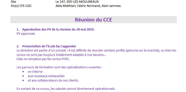Flash Compte rendu du Comité Central d’Entreprise Capgemini – Juillet 2019