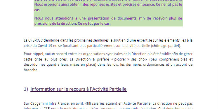 CSEE INFRA Extraordinaire – 7 Mai 2020 Flashs15 mai 2020CSEE INFRA extraordinaire – 7 Mai 2020 – Information sur le recours à l’activité partielle