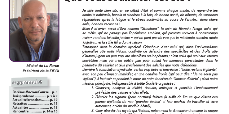 Barême Macron/Course .. p. 3 Jurisprudence ……….. p. 5 à 9 Actualité branches ……. p. 10 Retraites ……………….. p. 11 Actualités ………………. p. 13 Rencontre ………… p. 14 à 15 Formations ………. p. 16 à 17 Affiches …………………. p. 19