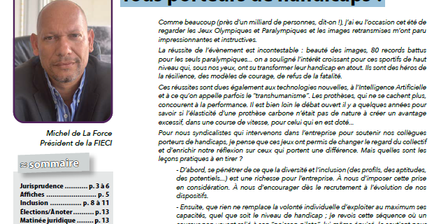 Jurisprudence ……….. p. 3 à 6 Affiches …………………… p. 5 Inclusion …………… p. 8 à 11 Élections/À noter ………. p. 13 Matinée juridique …….. p. 13 Formation ………. p. 14 à 17 Evènements …………….. p. 18