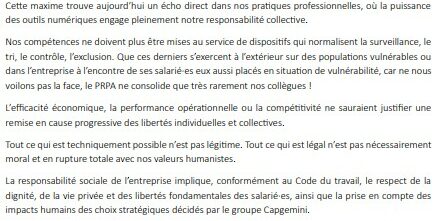 Nous exprimons une indignation profonde face à l’implication de notre entreprise dans des projets technologiques exploitées au service de politiques de contrôle migratoire répressives et assassines.
