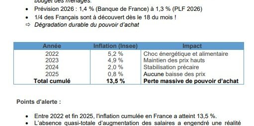 Revendications principales de la CFE-CGC : Compenser les pertes de pouvoir d’achat cumulées des années précédentes.