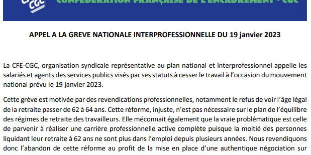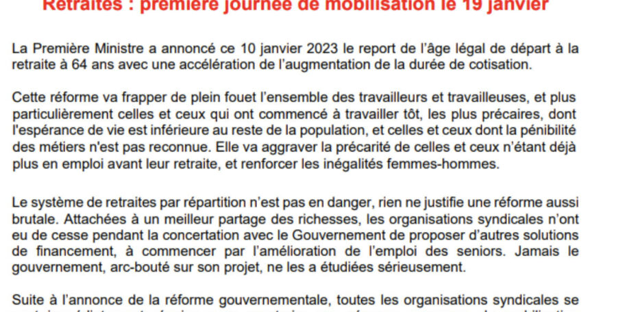 Retraites – Nous appelons donc les salariés à se mobiliser massivement dès le 19 janvier sur tout le territoire.