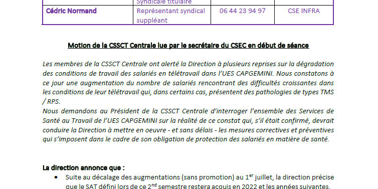 Comité Social et Economique d’Etablissement – INFRA – 24 et 25 Juin 2021