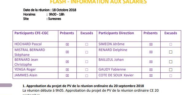 Flash – Compte Rendu Comité d’Entreprise – Capgemini TS – 18 octobre 2018